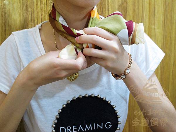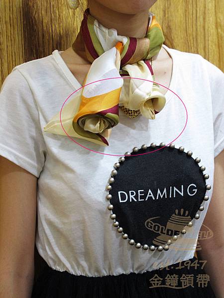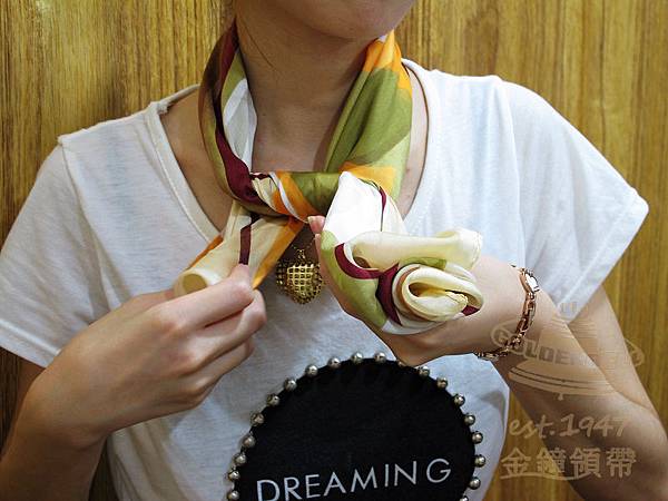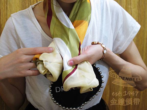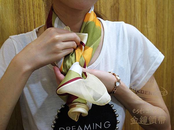 簡單的打個單結,就好了! 就這麼簡單,把絲巾折好,捲捲捲,在脖子上打個單結就好了!