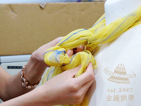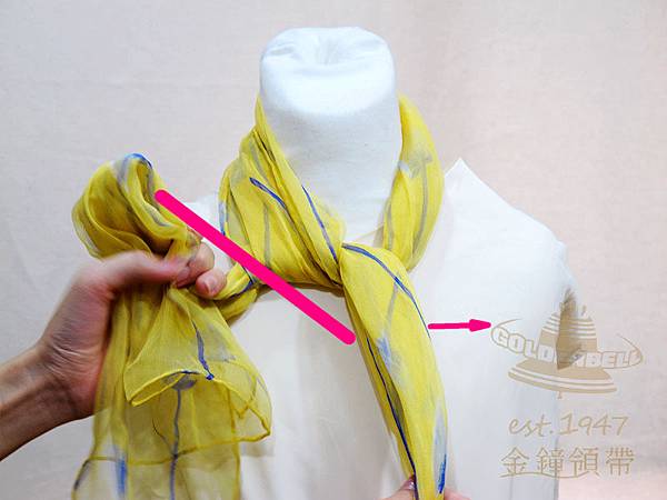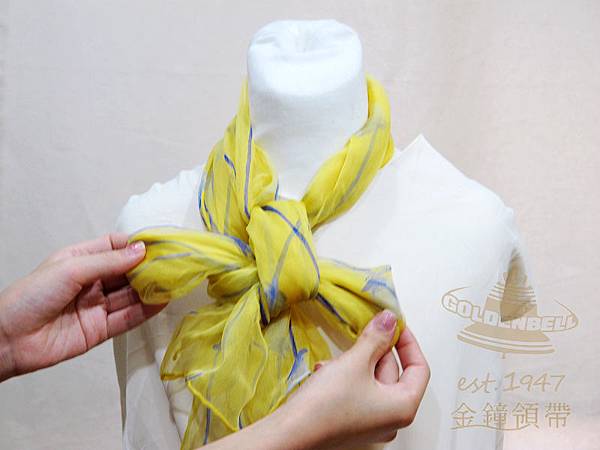 這就是簡單大方的絲巾蝴蝶結。 蝴蝶結人人都會打,運用在絲巾上面也會有很不同的效果。