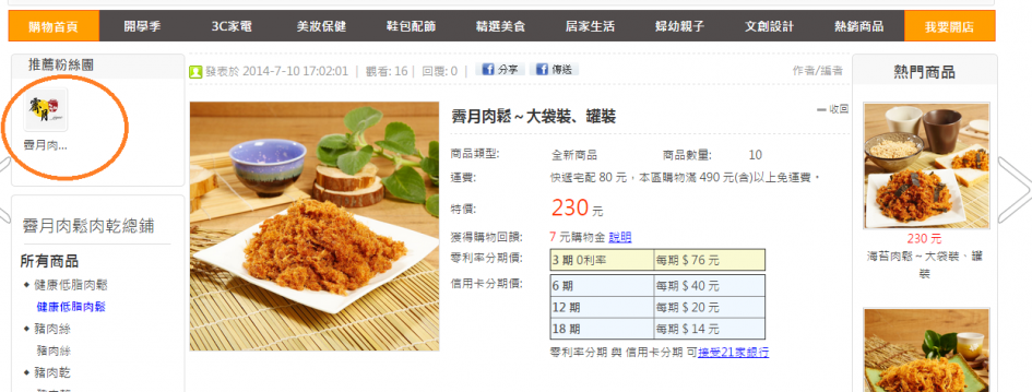 點進商品仔細瞧瞧, 發現商店裡面竟然有推薦粉絲團!
