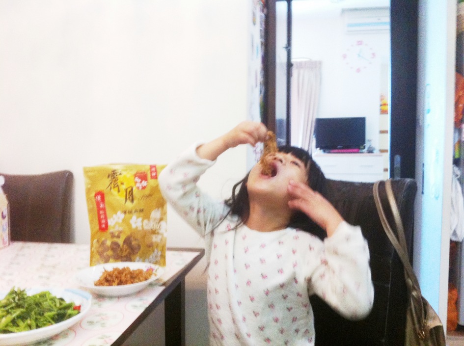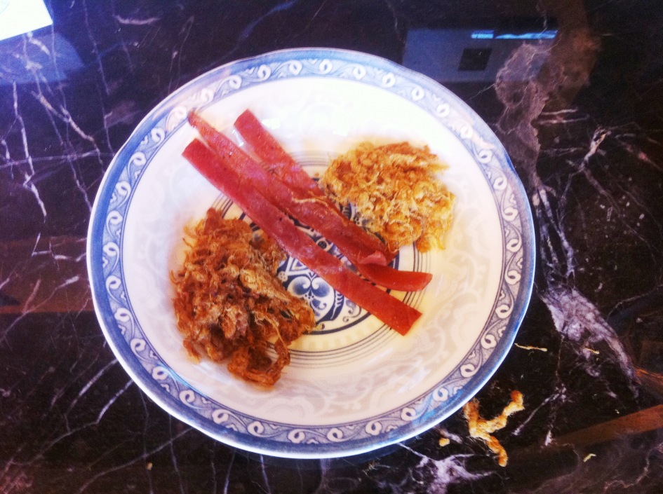 最後把好吃的肉鬆肉乾裝在盤子上, 可以吃飯囉!